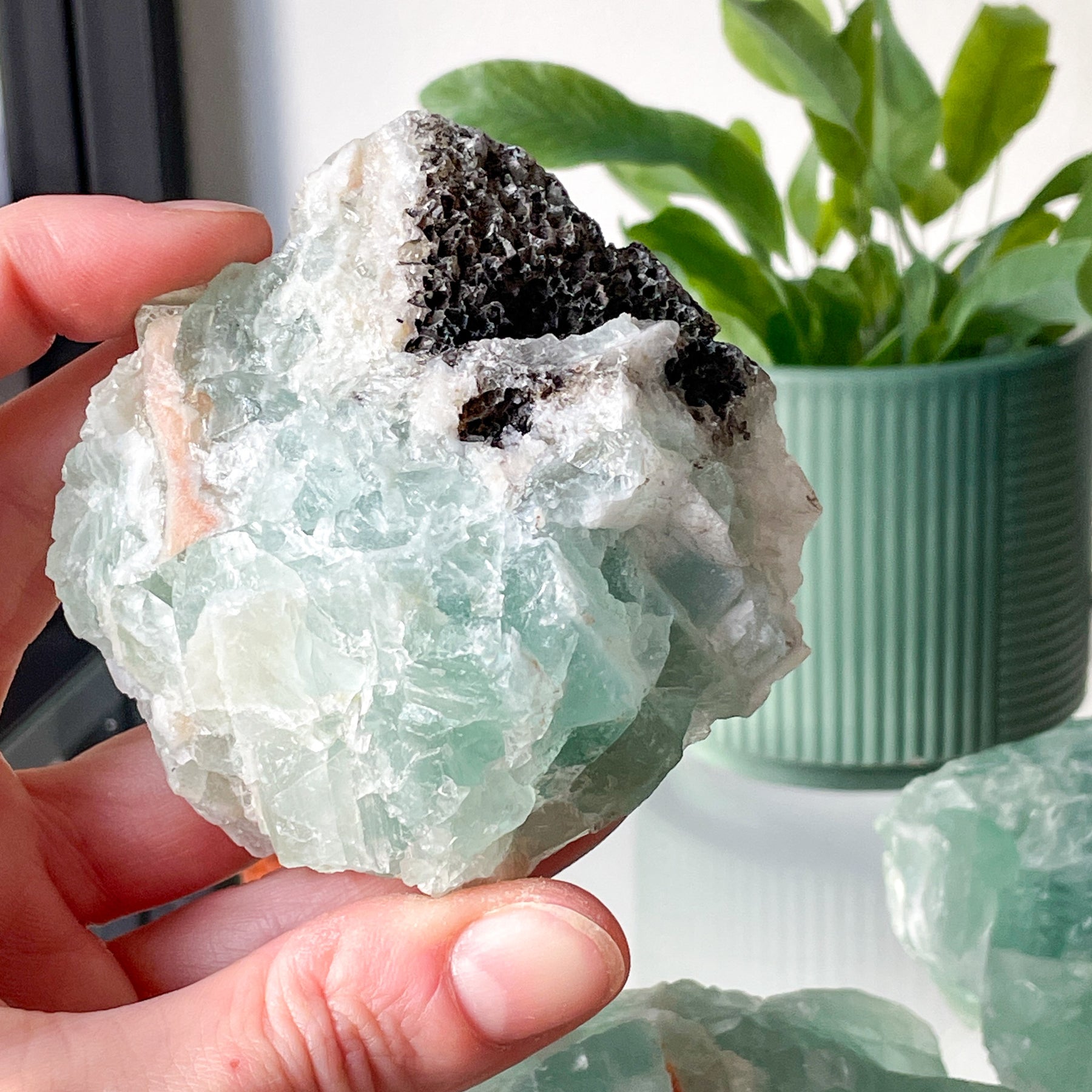 Weer drie heel mooie brokken kunnen vinden met zulke mooie kleuren en belijningen - blijft mijn favoriete steen fluoriet!