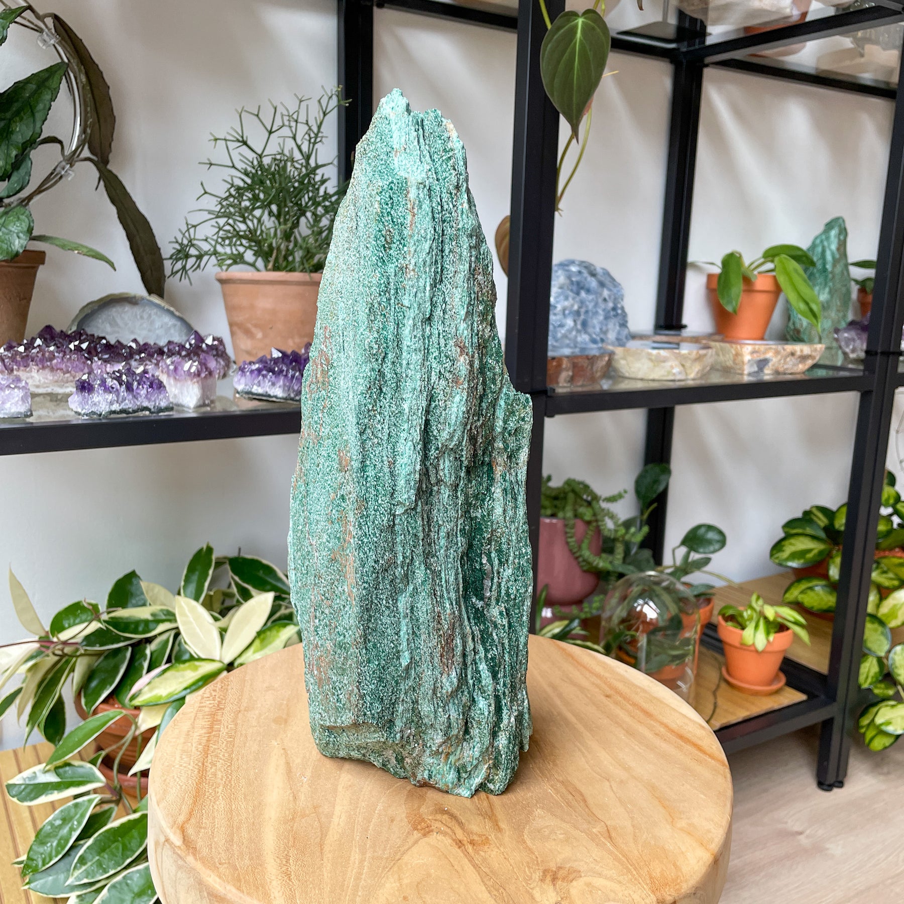 Fuchsiet behoort tot de mica-groep en staat bekend om zijn glanzende, parelmoerachtige, schilferige textuur en het vermogen om in dunne lagen te splitsen. Fuchsiet dankt zijn naam aan de Duitse mineraloog Johann Nepomuk von Fuchs.
