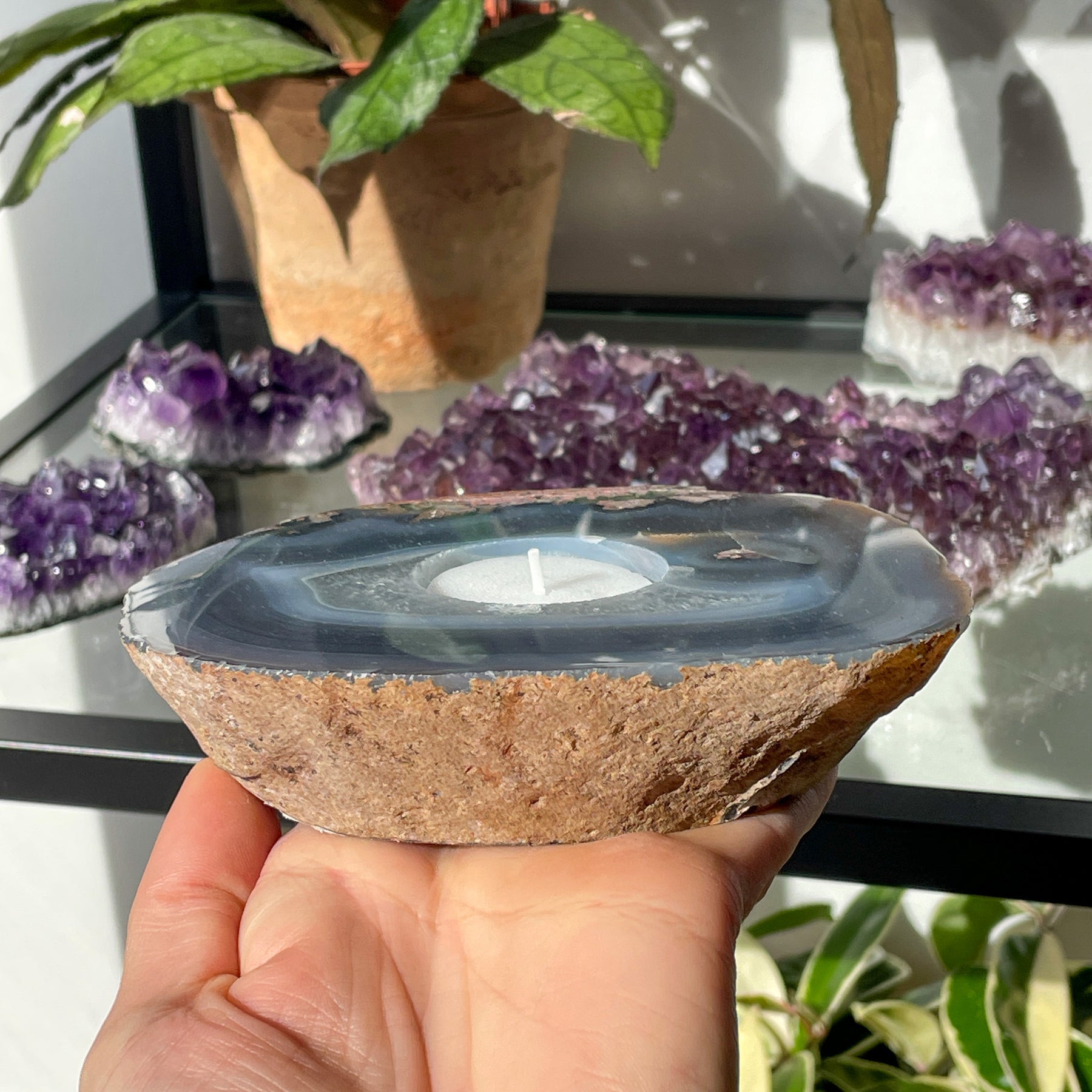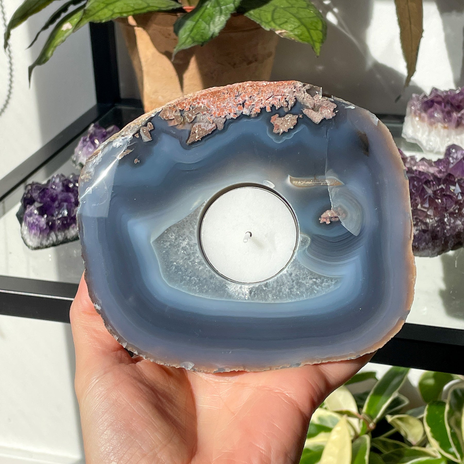 agaat schijf theelichthouder naturel 1 gaats 1 gat kaarshouder sfeerlicht kaarsen decoratie