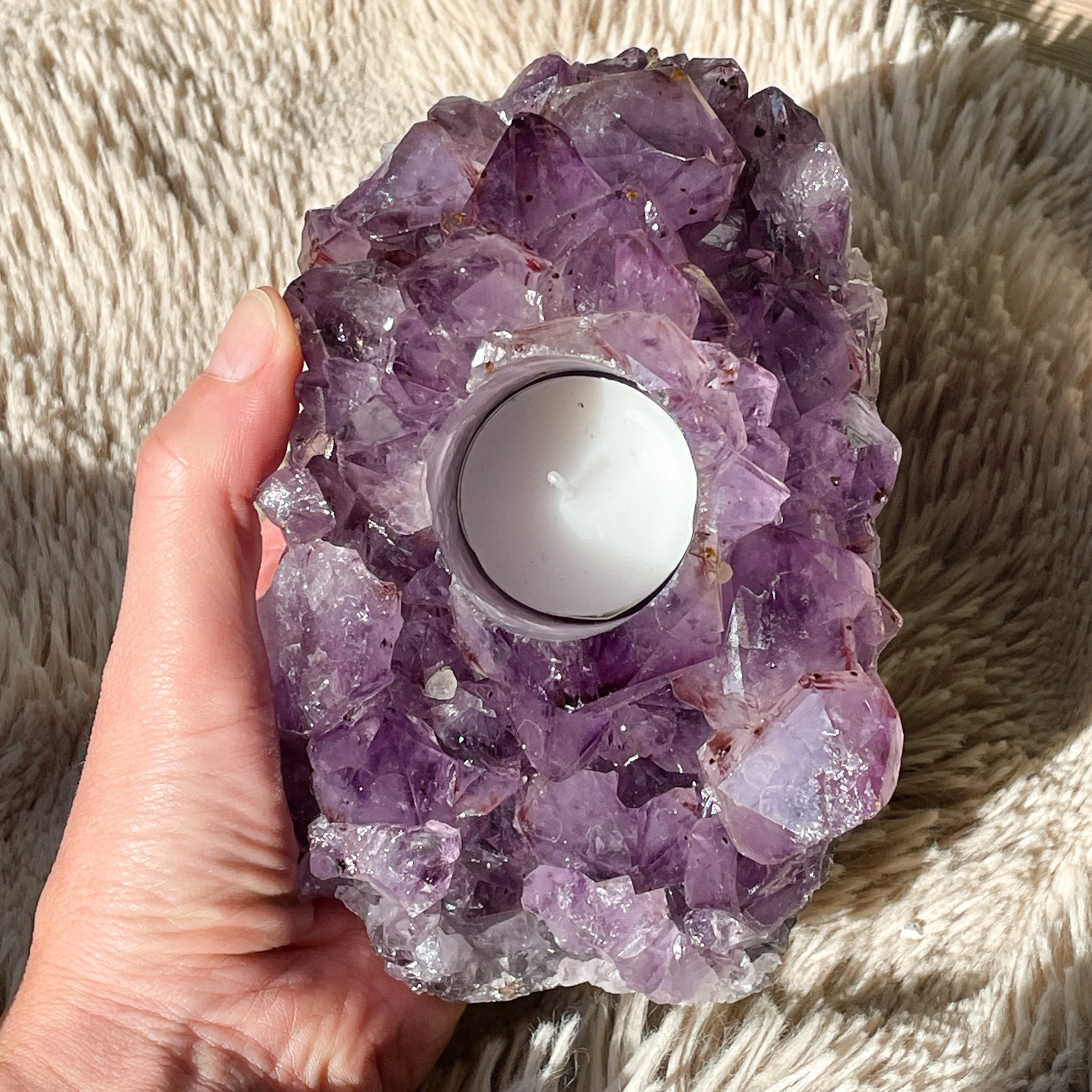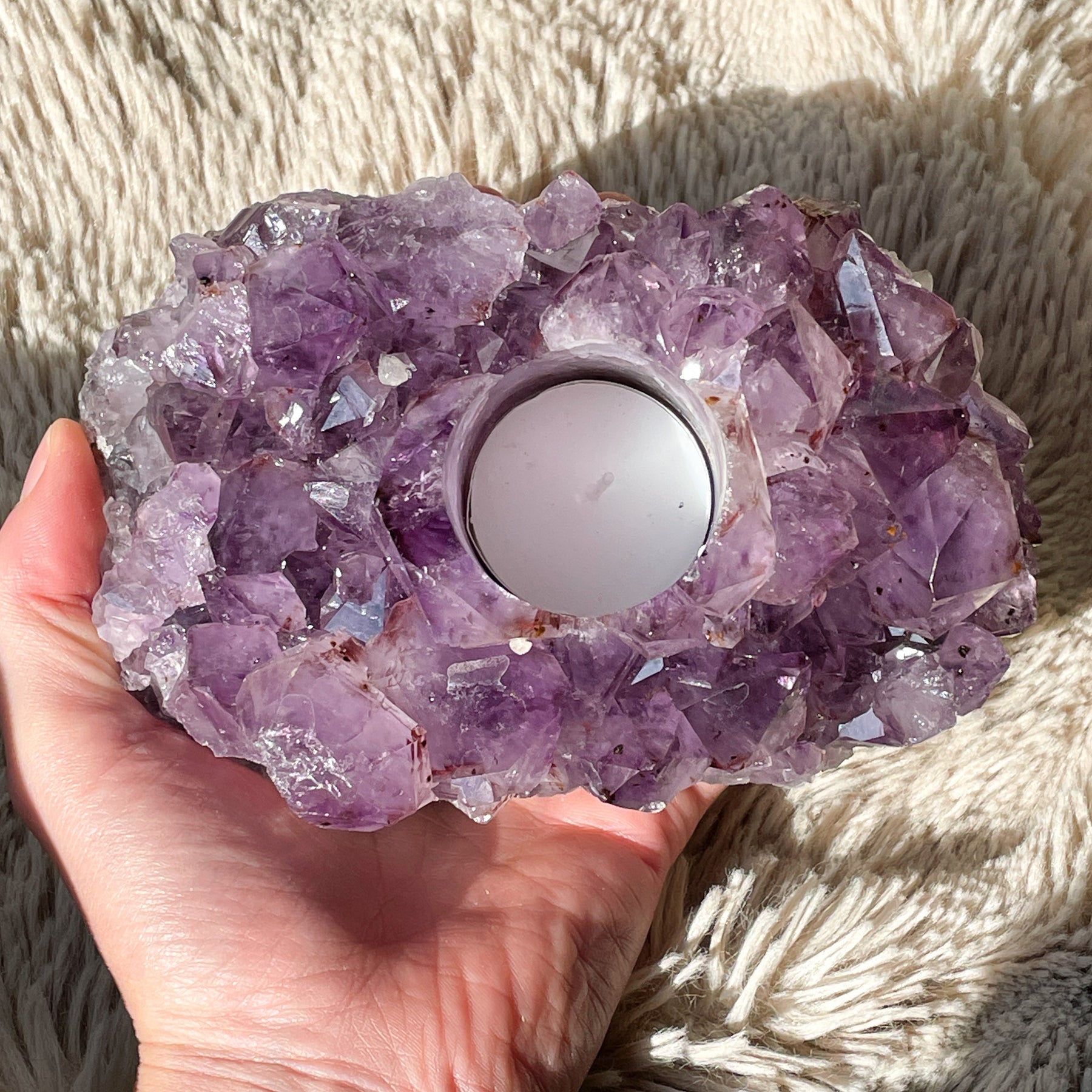 Amethist paarse ruwe theelichthouder (XL)