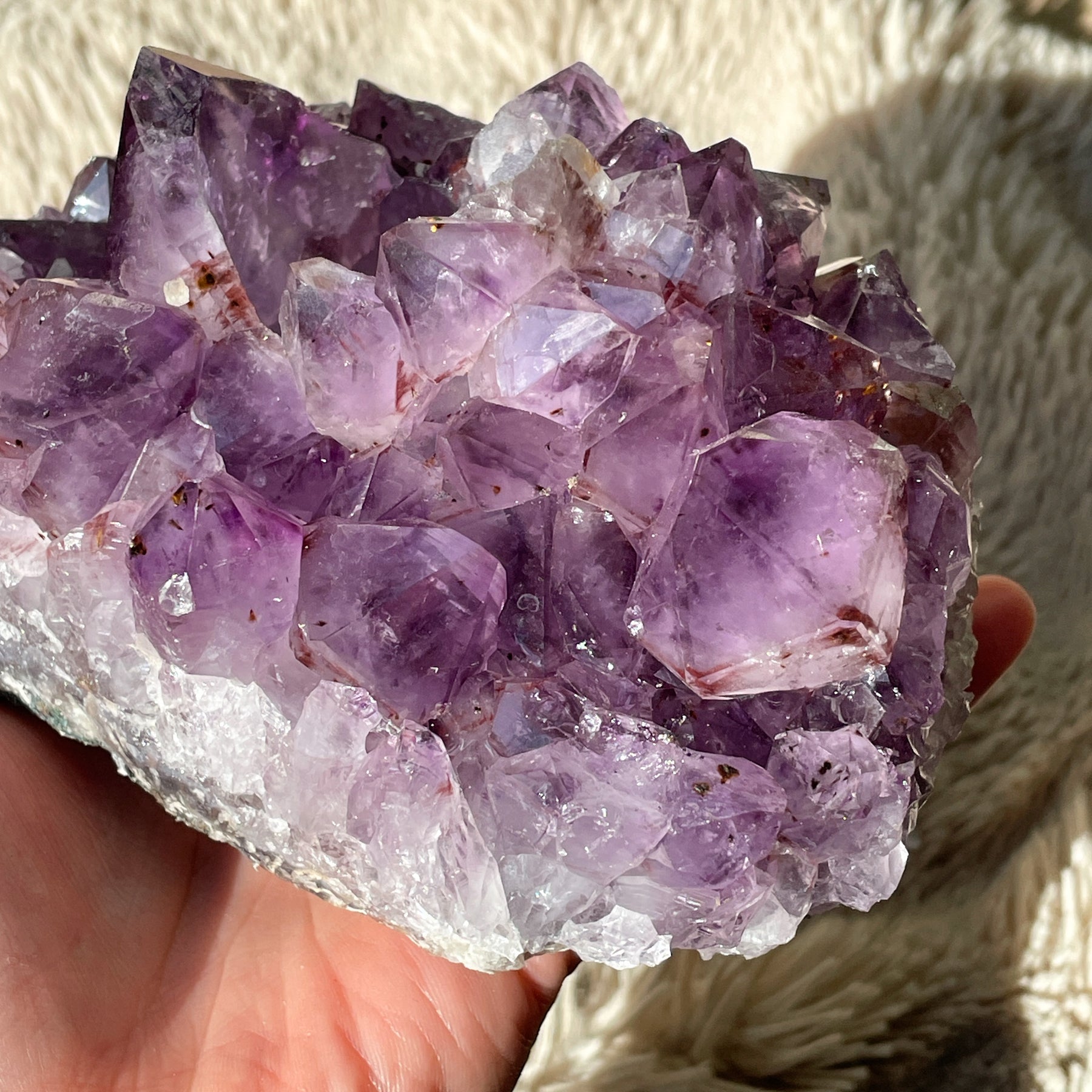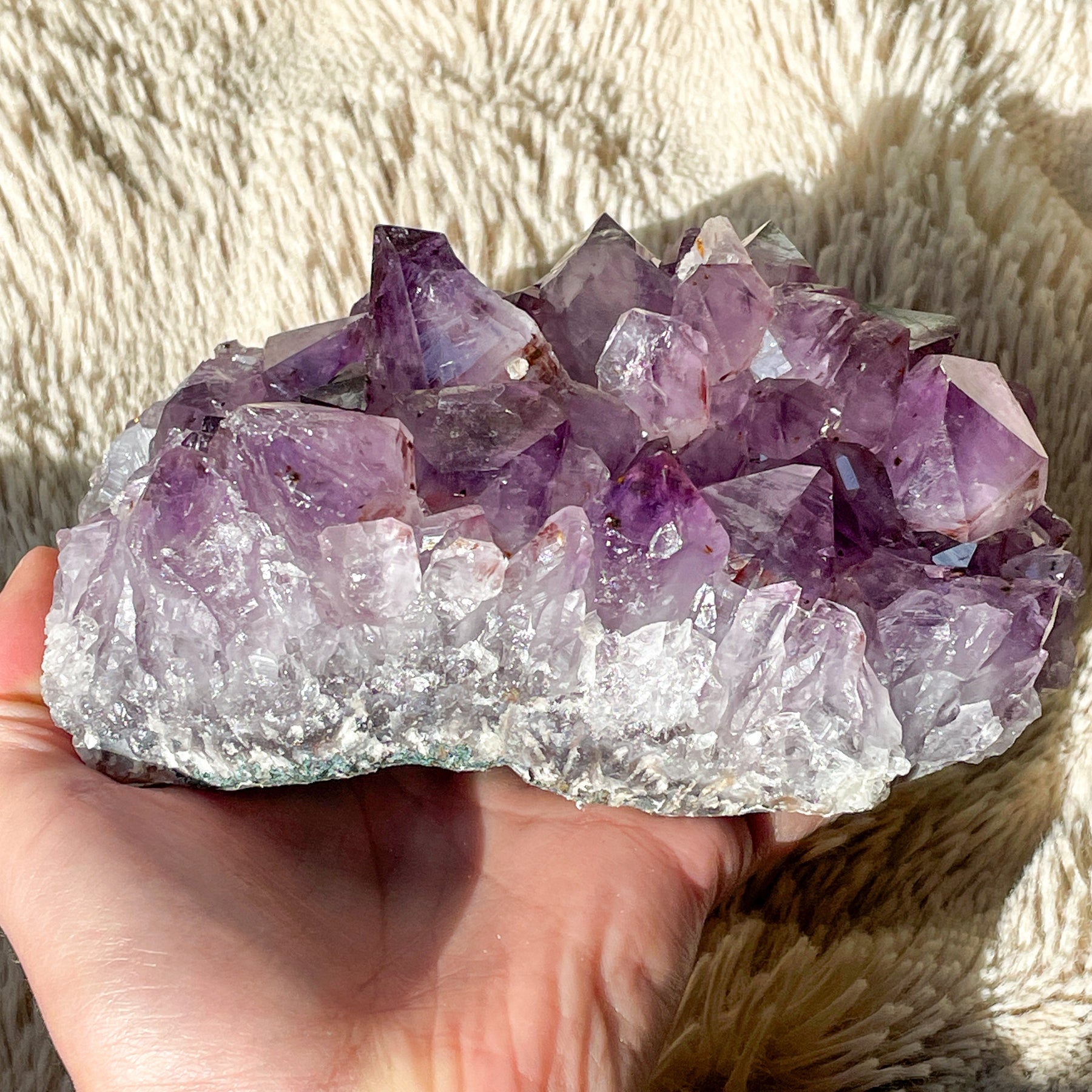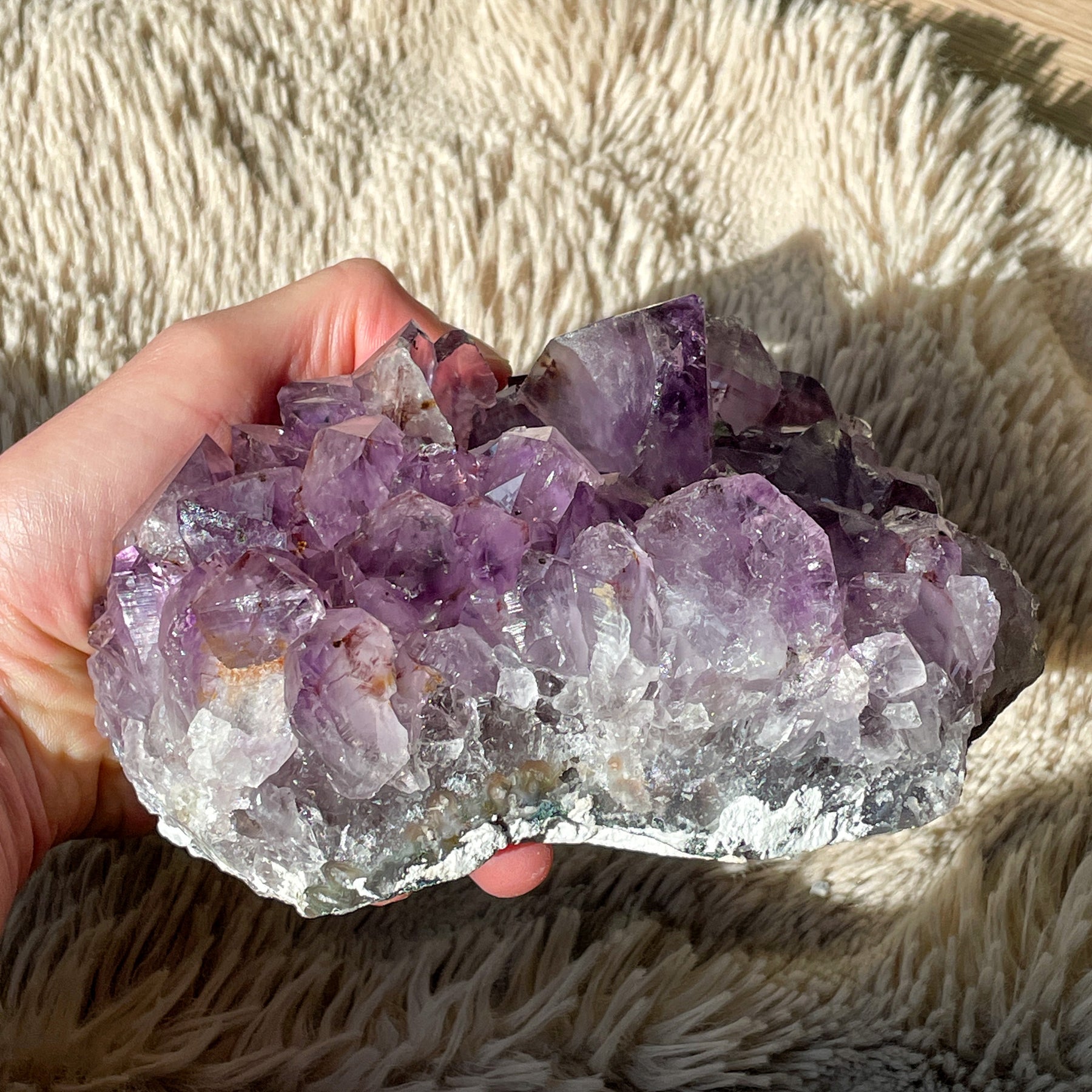 Amethist is een violette variant van het mineraal kwarts. Het is een veelgebruikte en populaire edelsteen vanwege zijn schoonheid en spirituele betekenis. De kleur wordt veroorzaakt door sporen van ijzer in het kristalrooster.