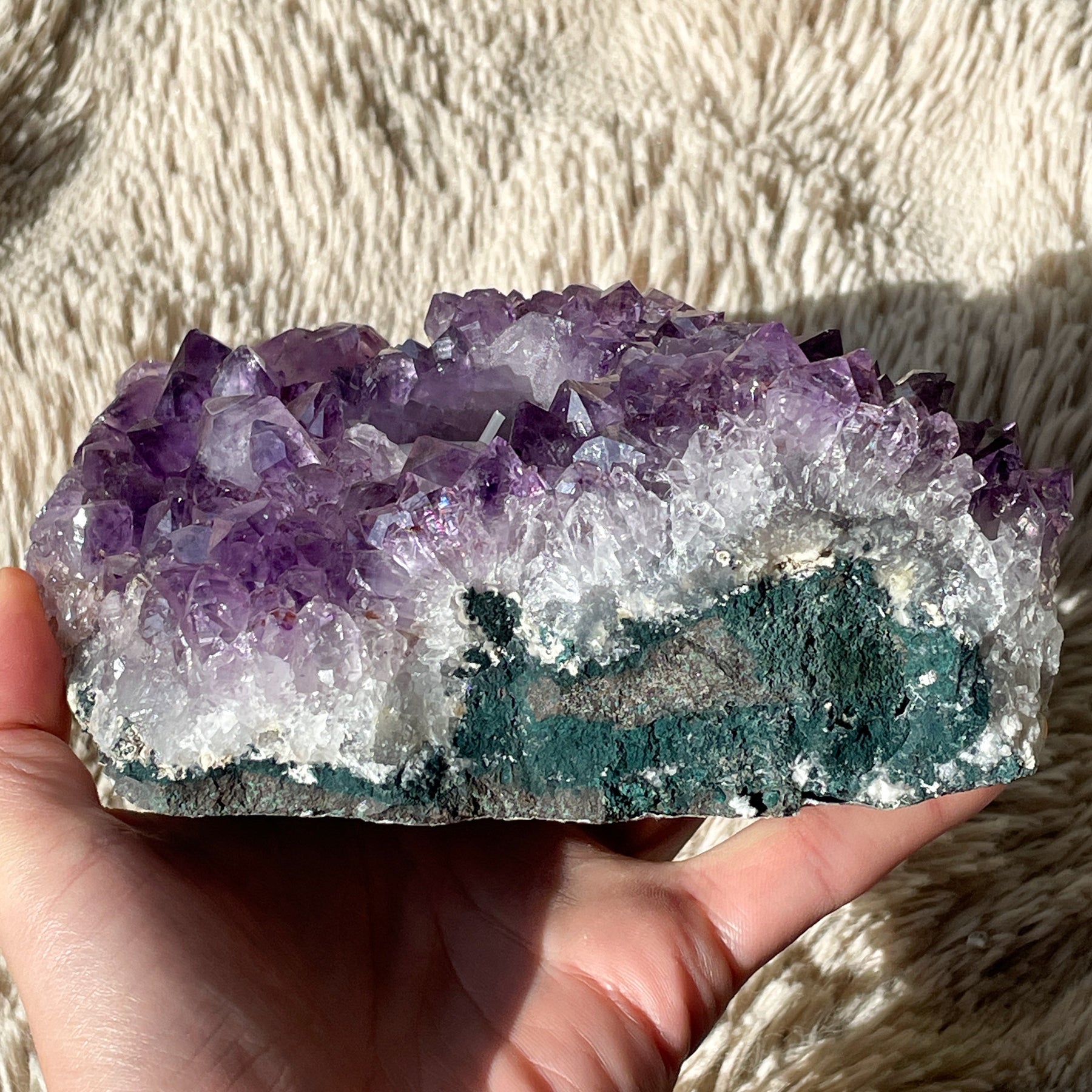 Amethist is een violette variant van het mineraal kwarts. Het is een veelgebruikte en populaire edelsteen vanwege zijn schoonheid en spirituele betekenis. De kleur wordt veroorzaakt door sporen van ijzer in het kristalrooster.