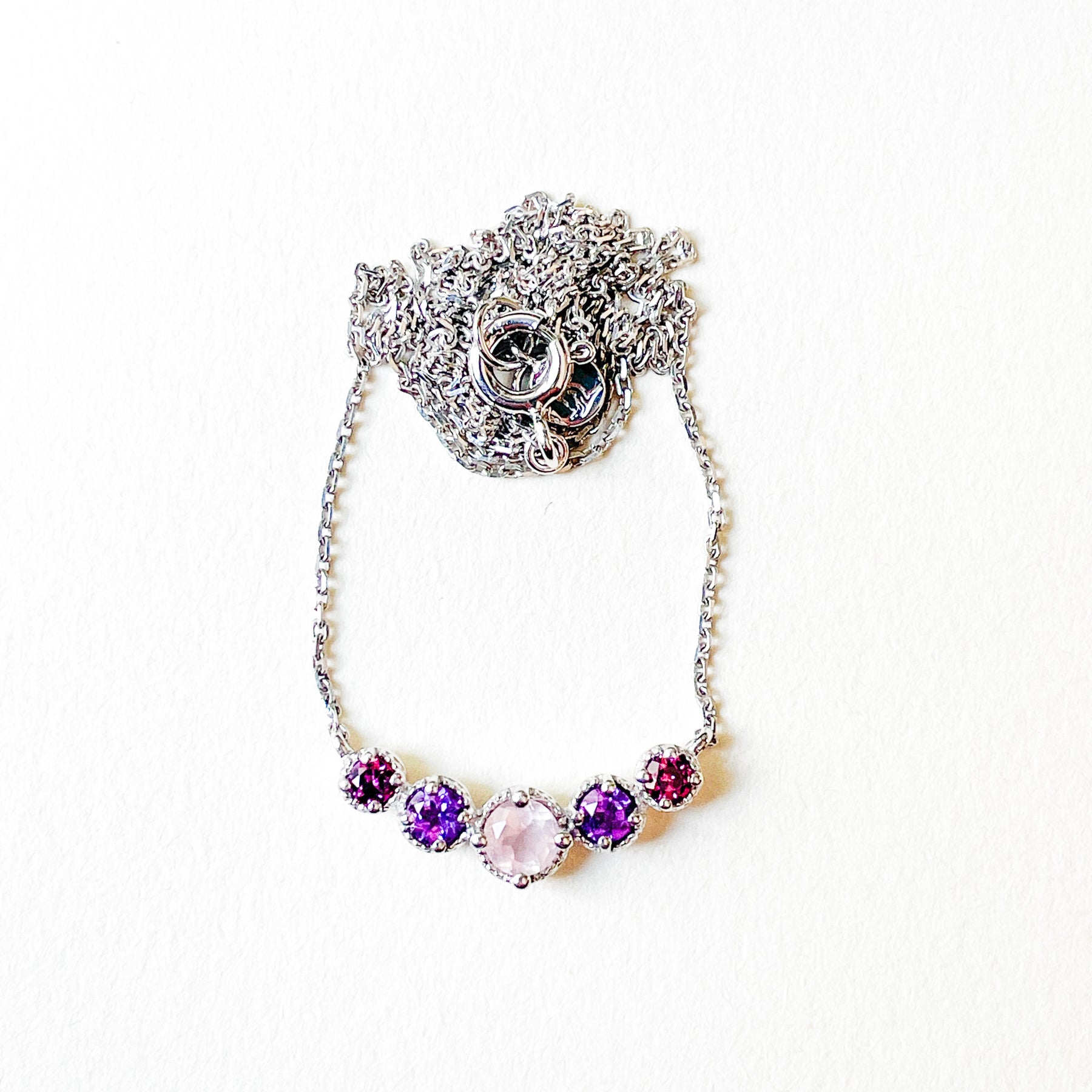 Amethist, rozenkwarts & granaat edelsteenketting