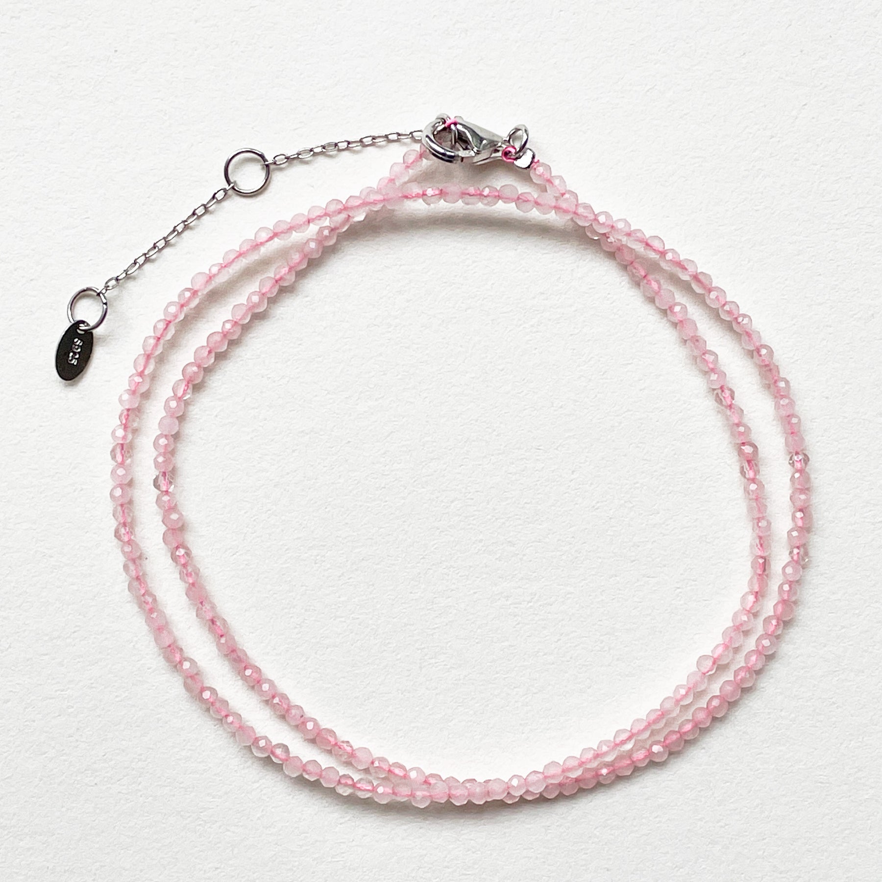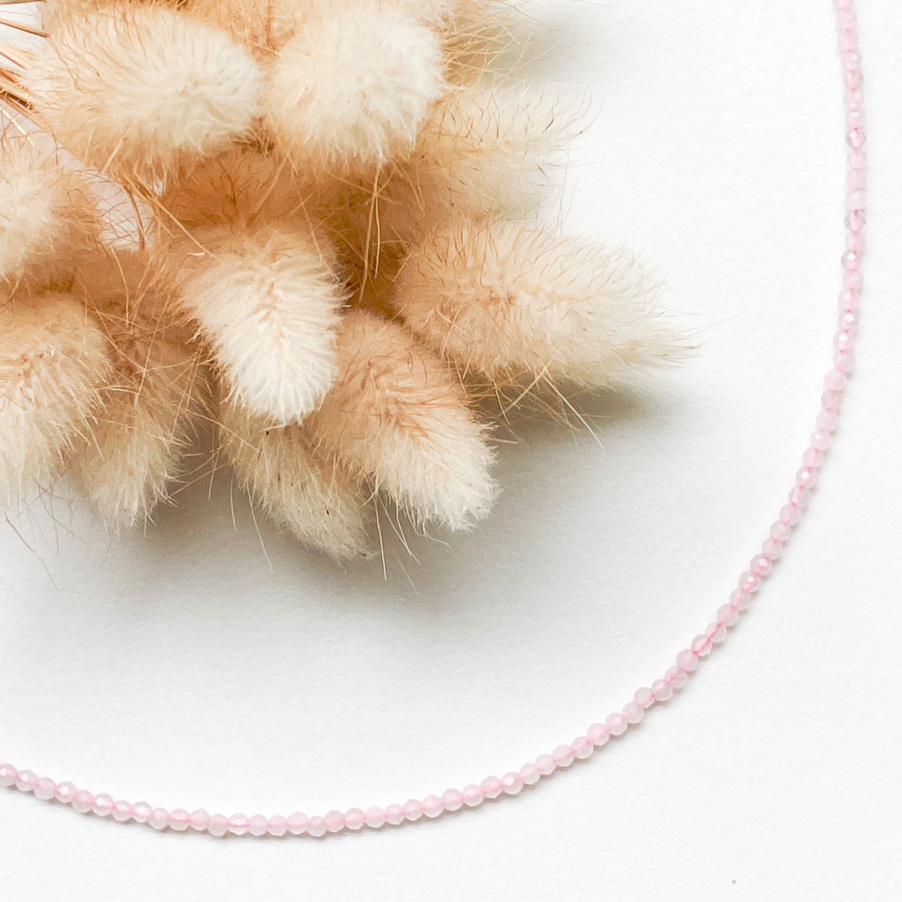 Deze rozenkwarts ketting heeft fijne facetkralen (Ø3mm) die subtiel glanzen en de zachte roze kleur van de steen laten zien. Rozenkwarts staat bekend om liefde, zelfacceptatie en zachtheid – een verfijnd sieraad met een mooie betekenis.