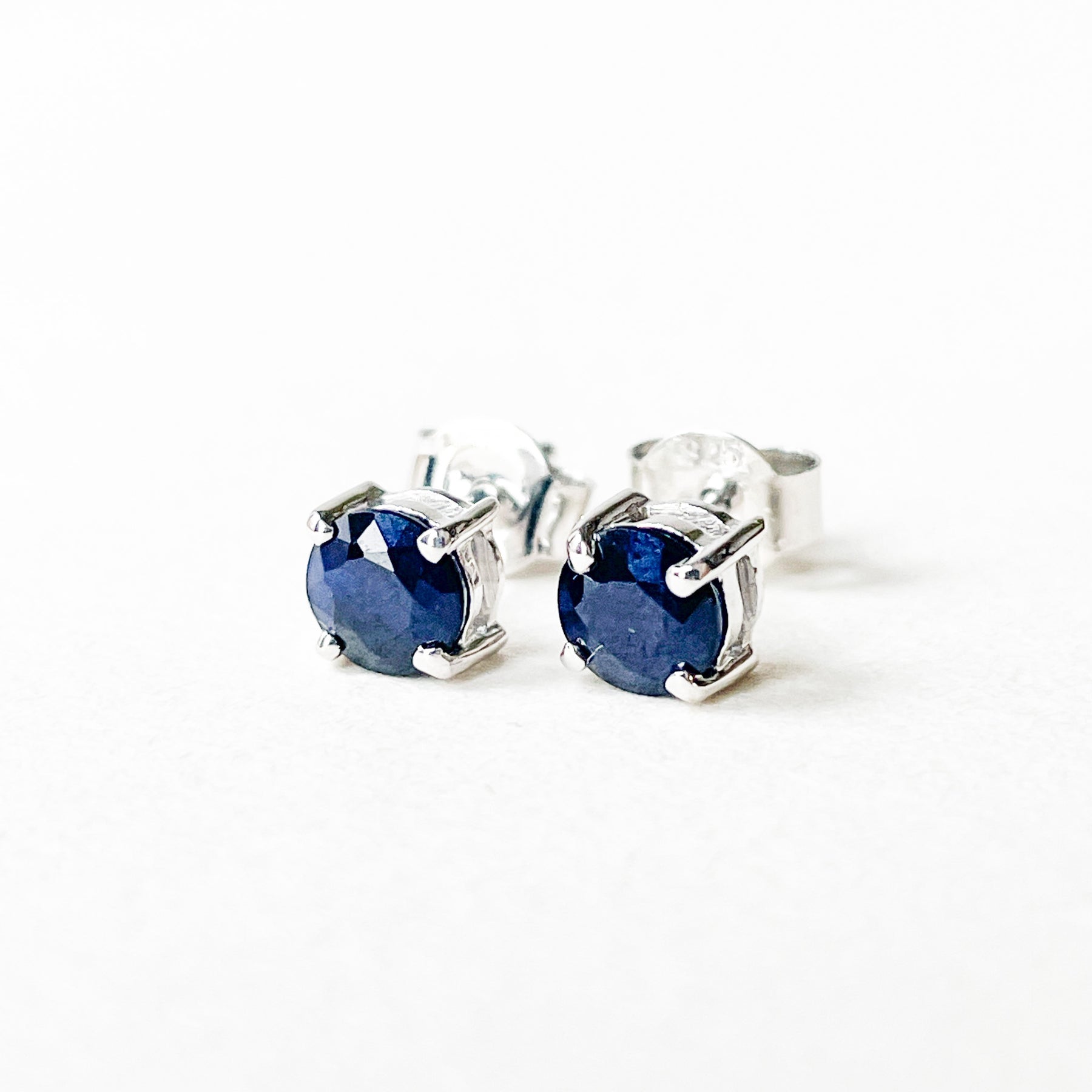 Saffier edelsteen oorbellen studs 5mm (925 sterling zilver)