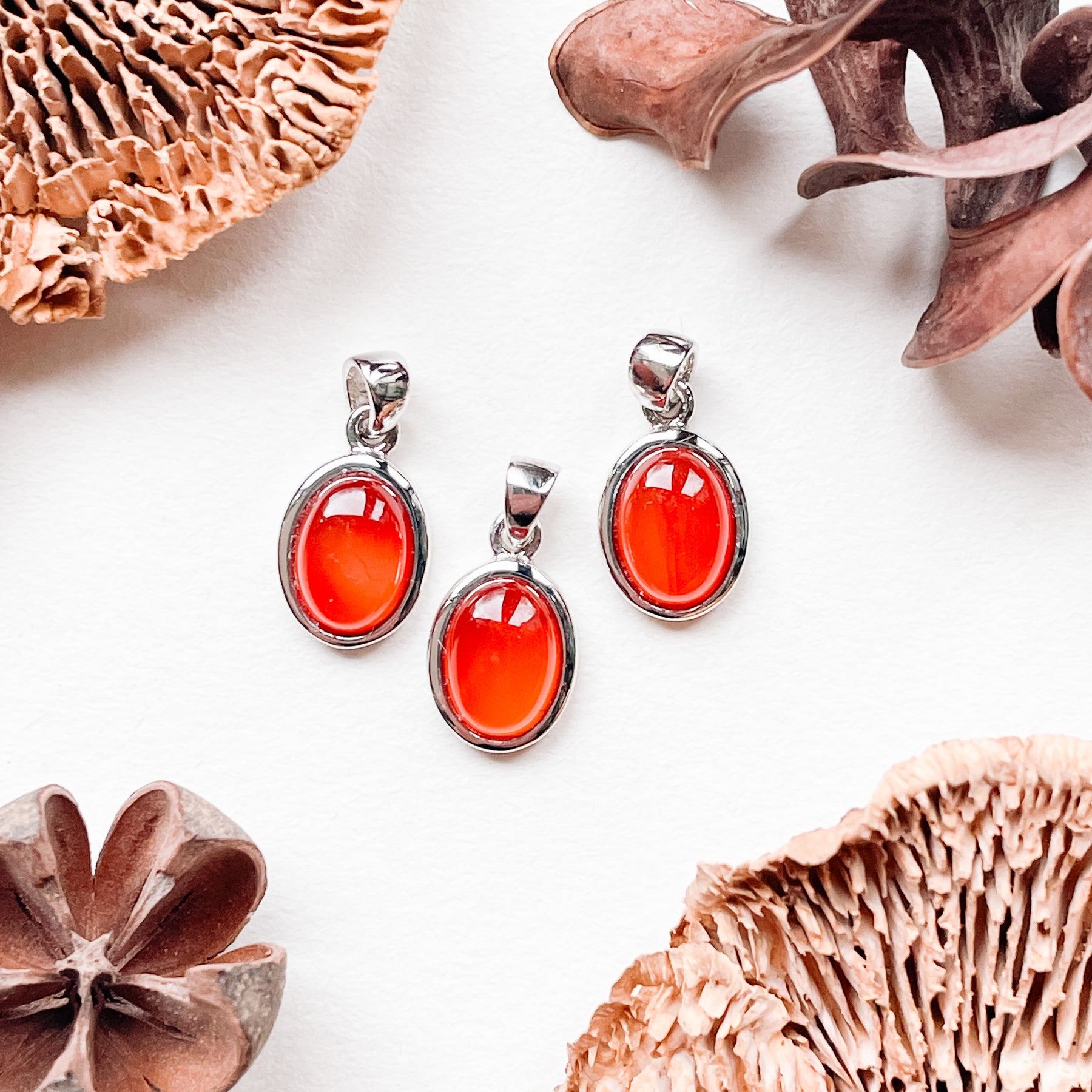 Carneool oranje/rode mini luxe hanger (925 sterling zilver/rhodium)