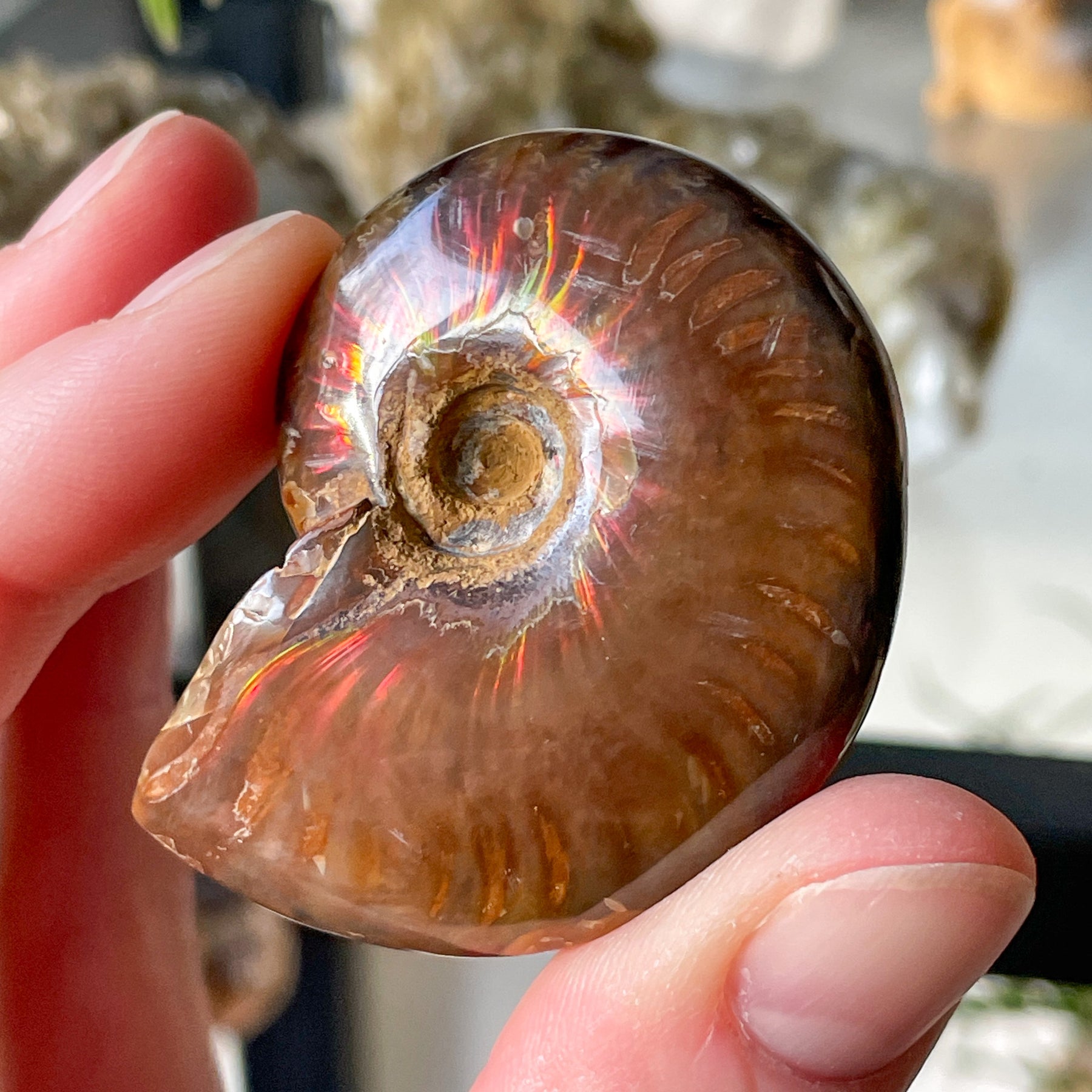 ammoniet opaliserend fossiel glad gepolijst edelsteen mineraal