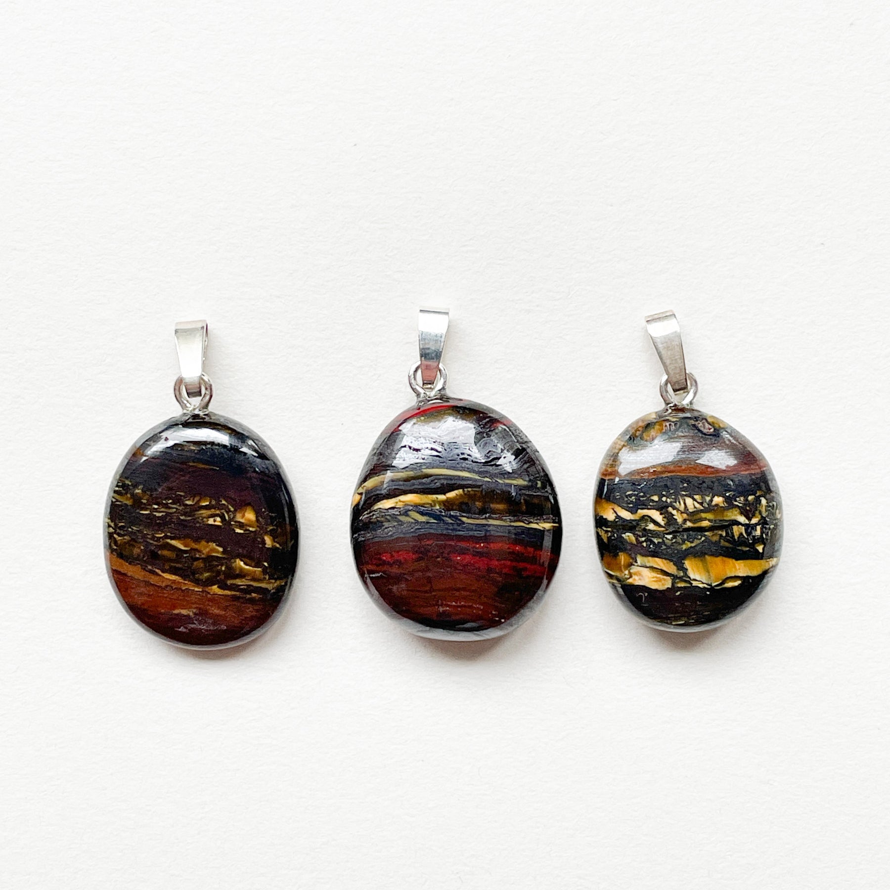 Tijgerijzer vertoont een opvallend uiterlijk met banden van goudbruin tijgeroog, rode jaspis en metallic grijs hematiet. Eén van mijn favoriete stoere stenen!