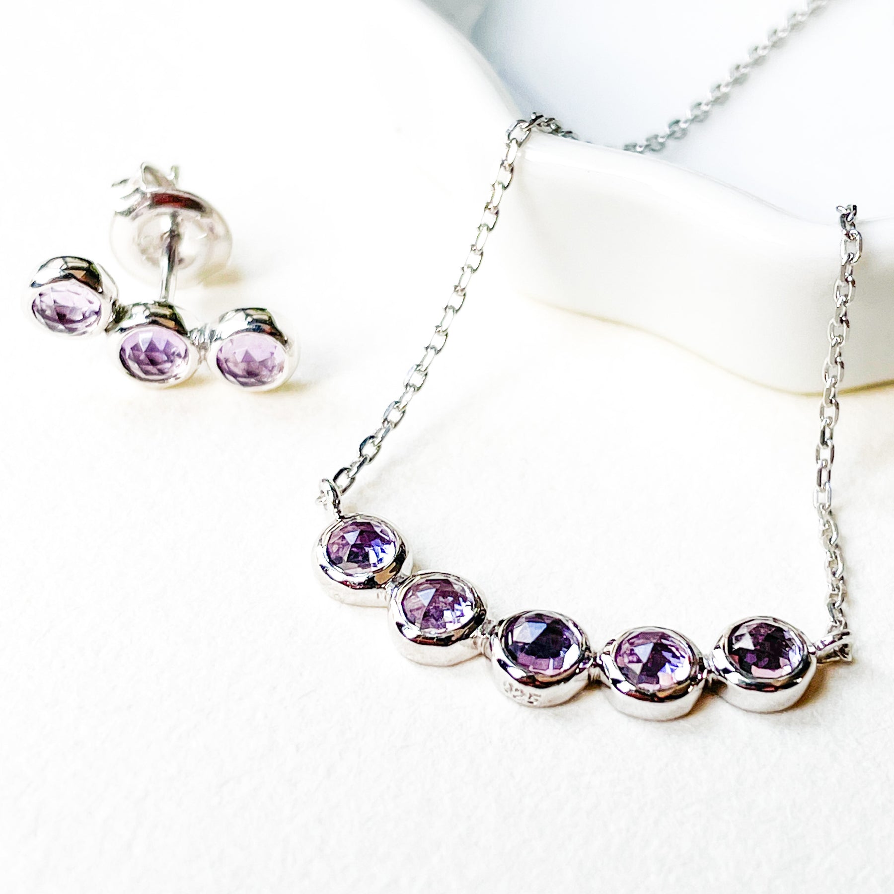 Amethist lavendel edelsteen design oorbellen (925 sterling zilver)