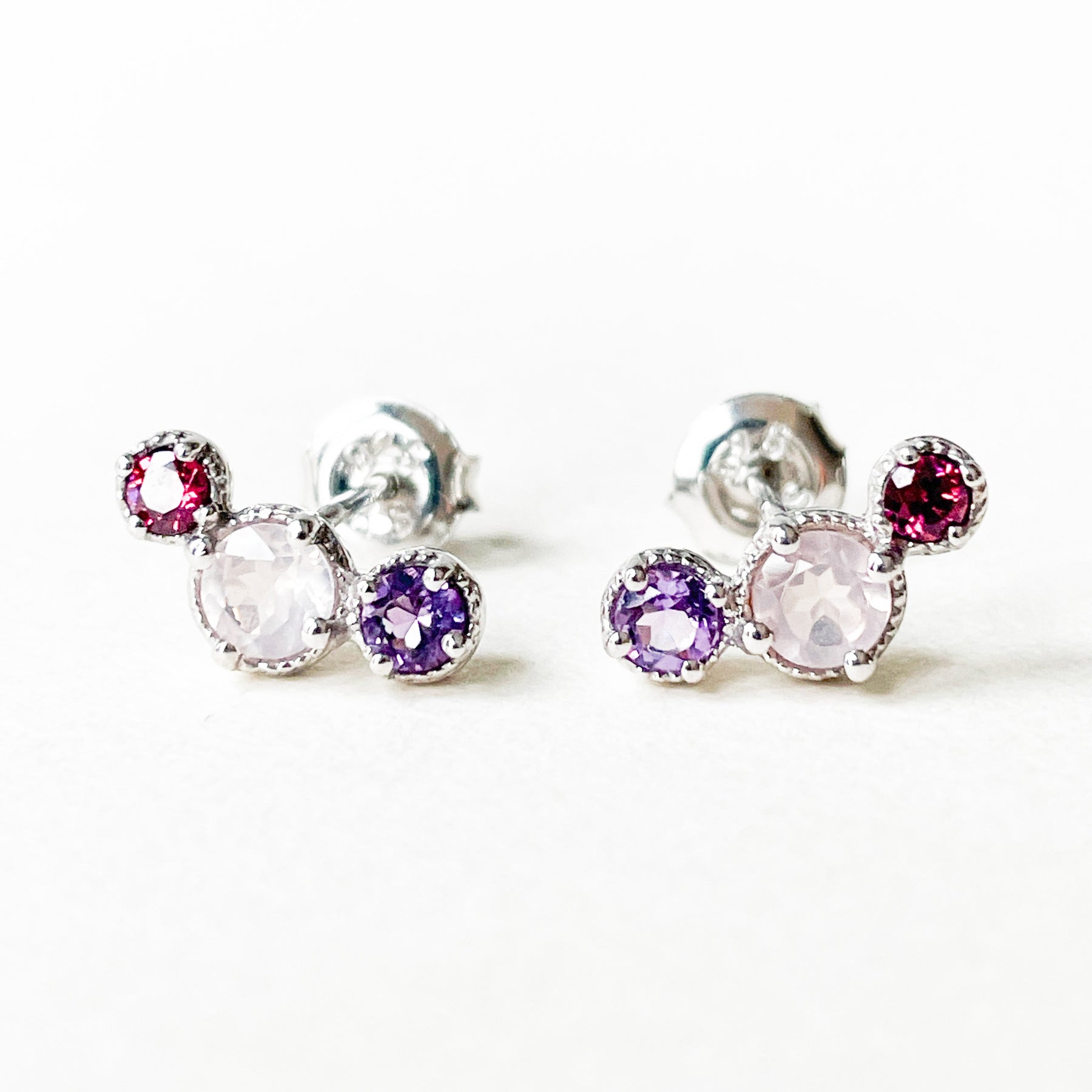 Amethist, rozenkwarts & granaat oorbellen