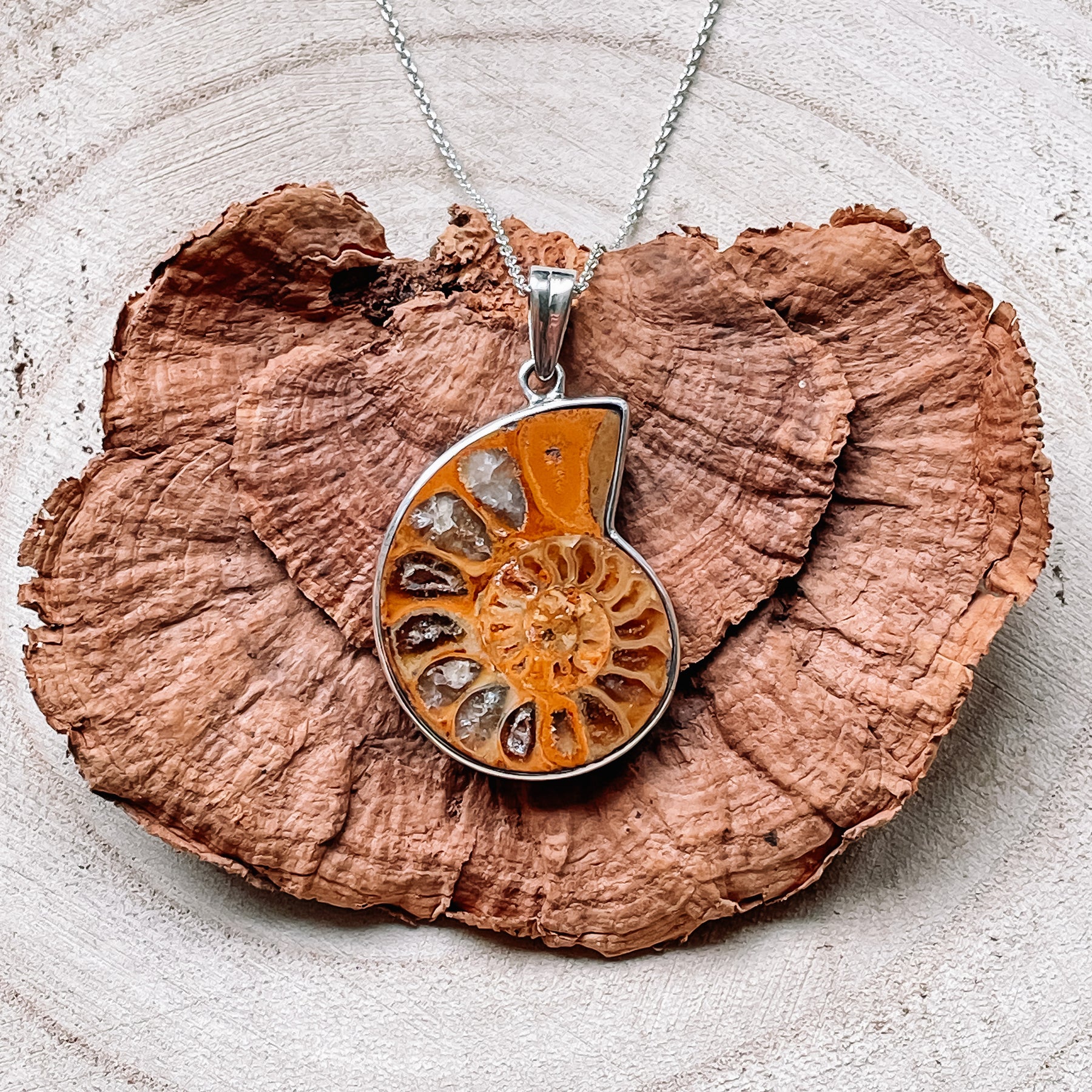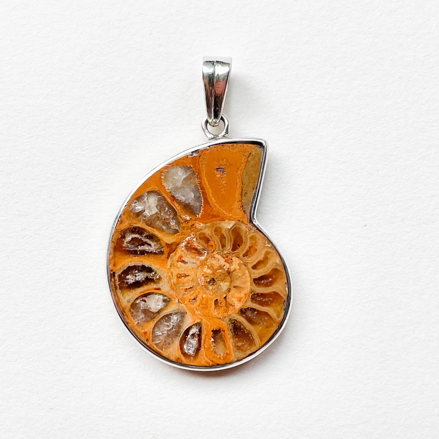 Ammoniet fossiel bruine luxe hanger (925 sterling zilver)