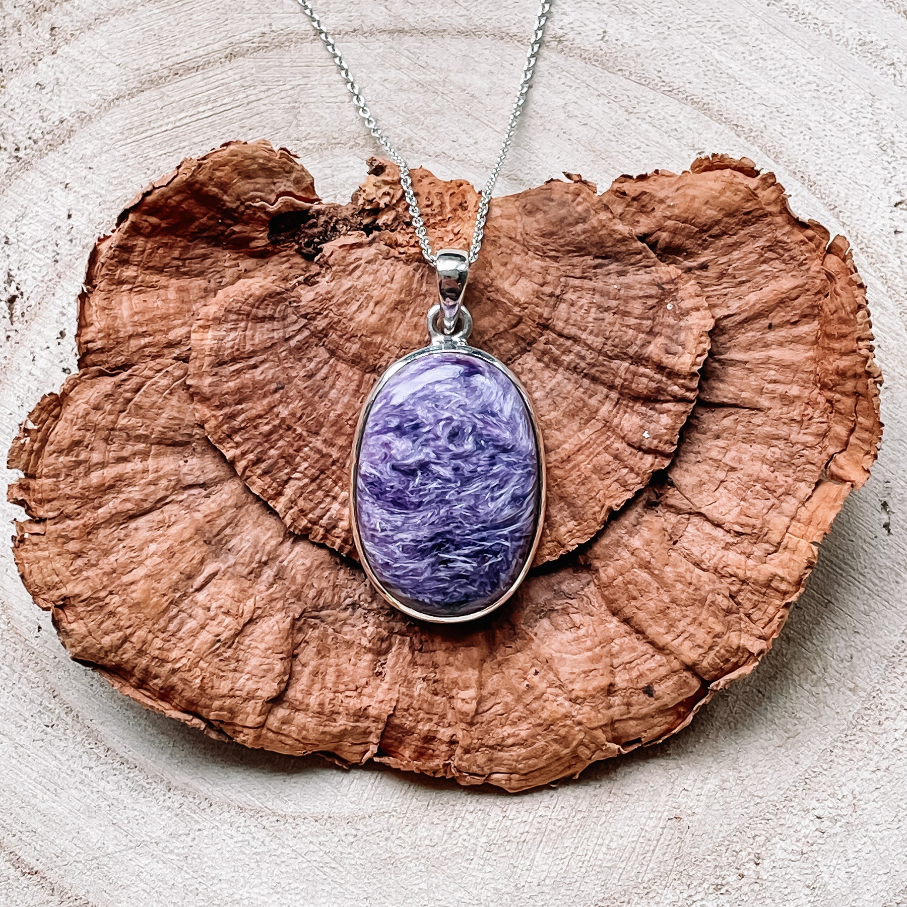 Charoïet paarse luxe hanger (925 sterling zilver)