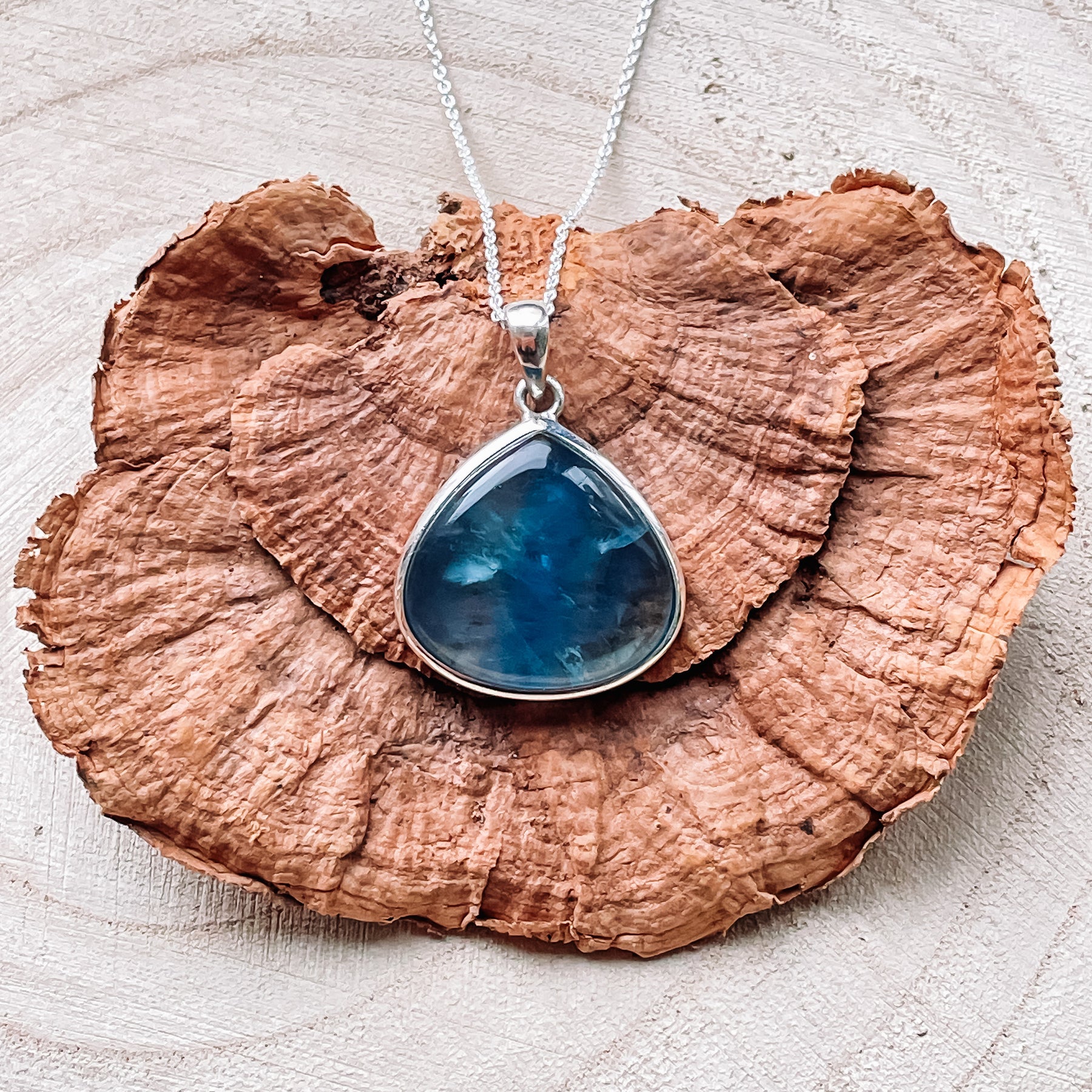 Fluoriet blauwe luxe hanger (925 sterling zilver)
