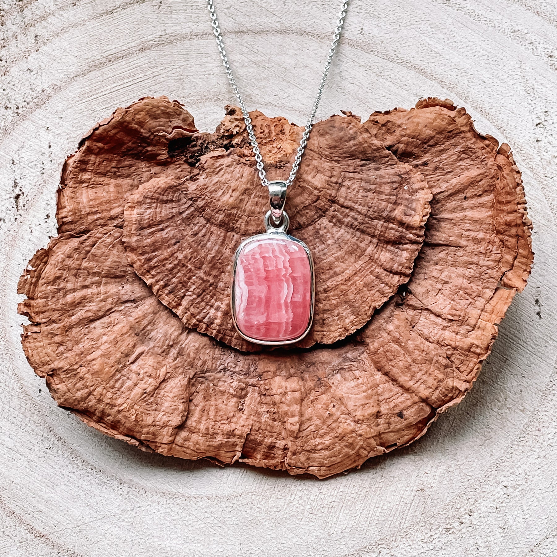 Rhodochrosiet roze luxe hanger (925 sterling zilver)