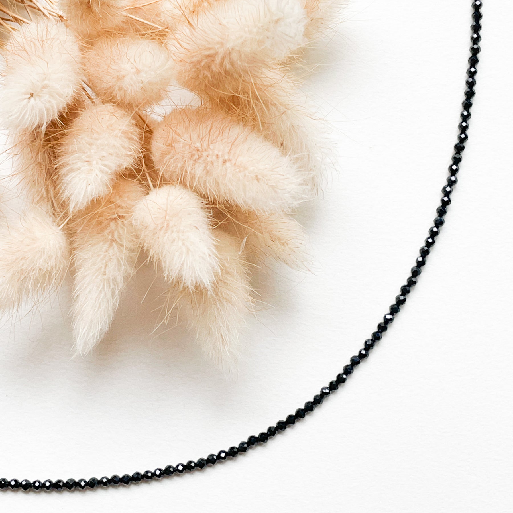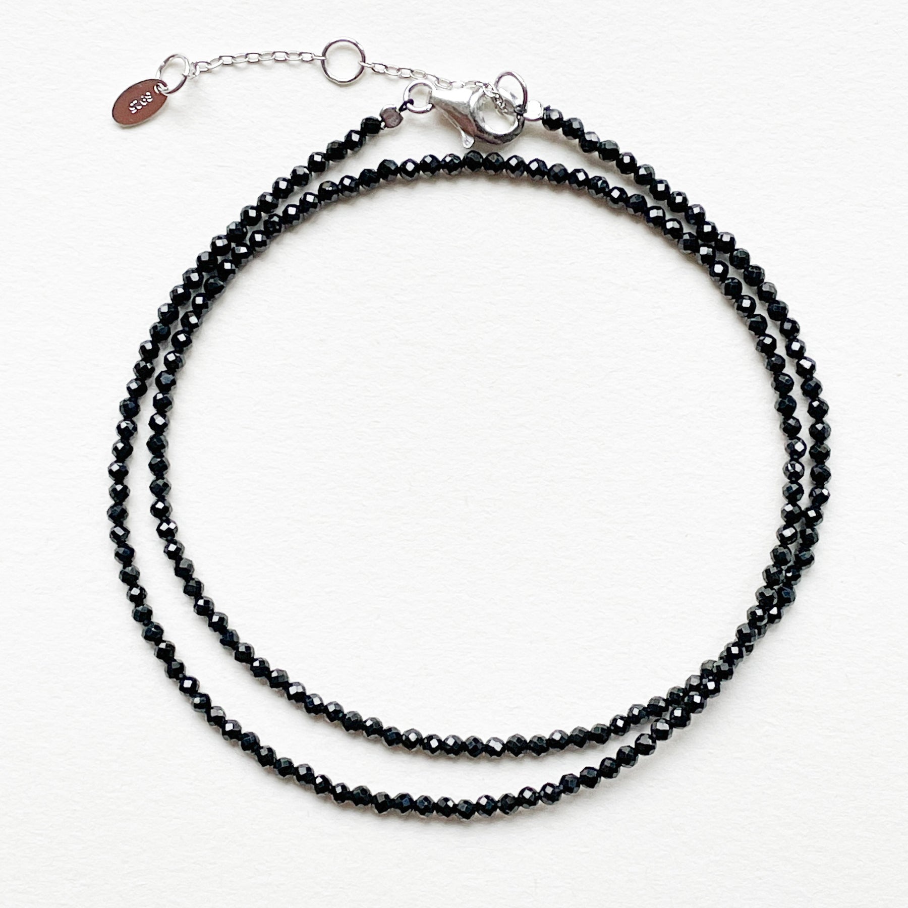 Deze zwarte toermalijn ketting heeft fijne facetkralen (Ø3mm) die subtiel glanzen en de diepe kleur van de steen laten zien. Zwarte toermalijn staat bekend om aarding, bescherming en stabiliteit – een verfijnd sieraad met een mooie betekenis.